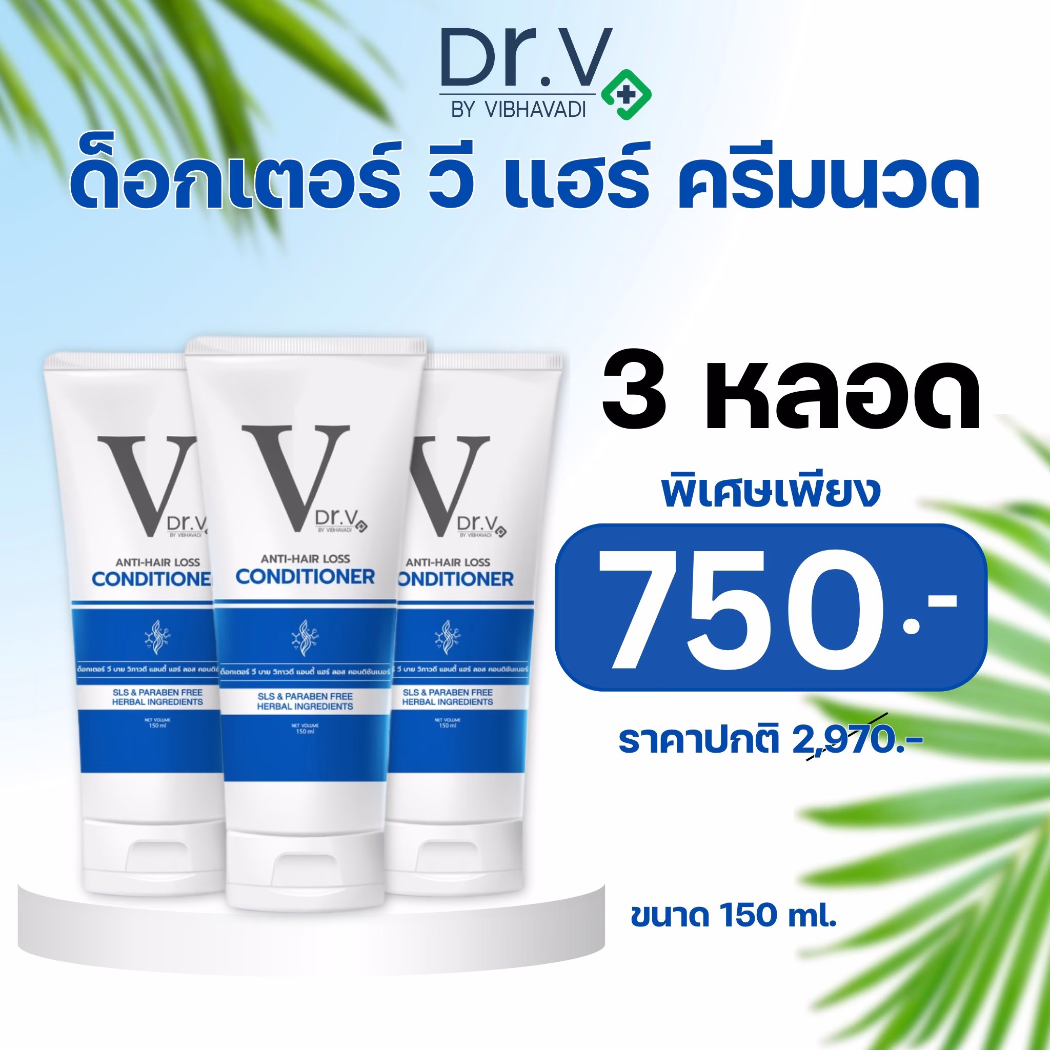 Dr.V VIBHAVADI ANTI-HAIR LOSS Conditioner ด็อกเตอร์ วี แฮร์ ครีมนวด 3 หลอด 750.-
